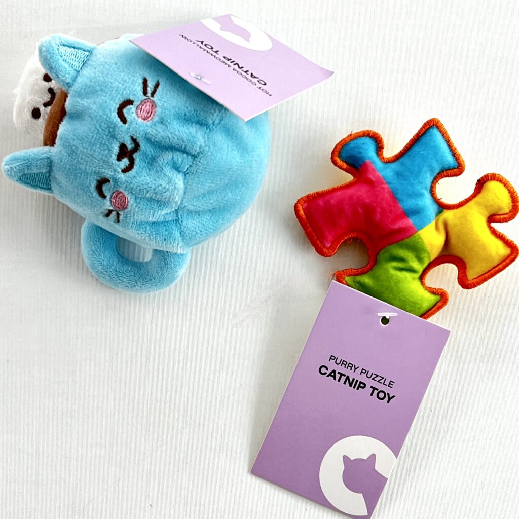 With either of them, you can sign up month-to-month or with a 3-month or 6-month plan where you prepay for that many boxes at a time. “The more you pay for ahead of time, the cheaper per box! The regular CatLadyBox can go as low as $34.99/month and the CRAZY CatLadyBox can be as low as $39.99/month.” You can cancel any time or just skip a subscription period if you want.